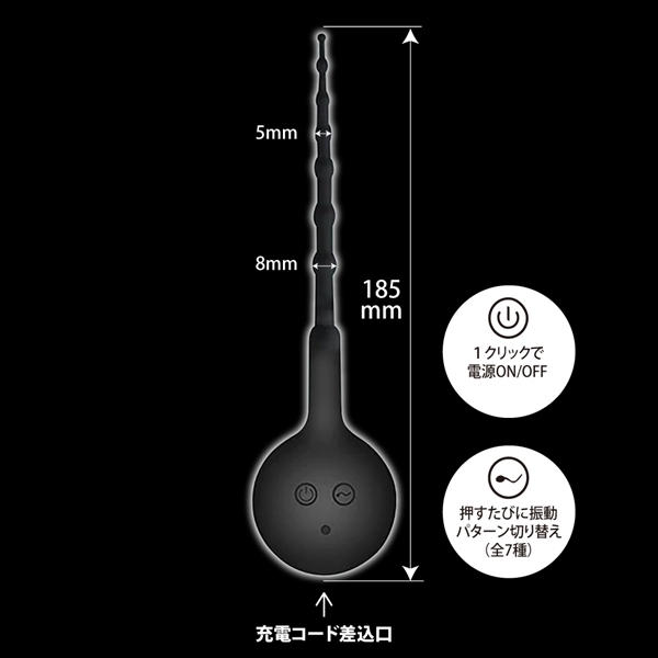 サイズ/仕様:パッケージ:28.5×7.2×3.0cm 本体:18.5cm・触手部突起最大径0.8cm USB充電式