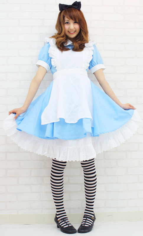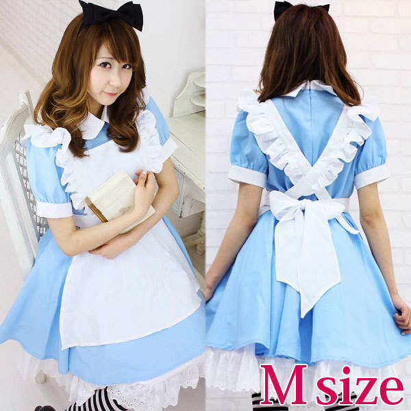 サイズ/仕様:Mサイズ:B80〜88cm・W66〜76cm 丈:ワンピース86cm(袖丈23cm、肩幅33cm、腕周り28cm、首周り36cm) セット内容:ワンピース(背中ファスナー、ウェスト一部ゴム使用)・エプロン(ボタンにより3段階の長さ調節可)・リボンカチューシャ(黒色リボン)