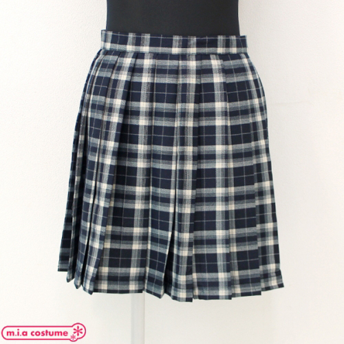 小道具(ニーソックス・猫耳) > ポケット付きのチェック柄プリーツスカート単品 濃紺×クリーム Lサイズ
