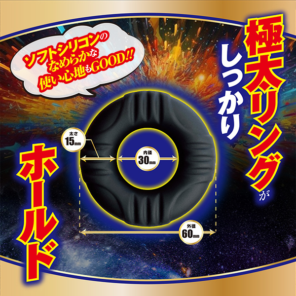 サイズ/仕様:パッケージ:15.2×10.2×2.5cm 本体:外径6.0cm・内径3.0cm・太さ1.5cm 素材:シリコン 重量:本体30g