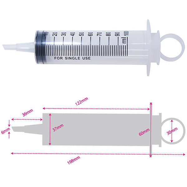 片手でもラクラク注入♪アナル洗浄や注入など、幅広い用途に使える万能プラスチック製シリンジ。