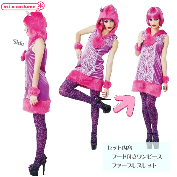 サイズ/仕様:Ladiesサイズ:B〜90cm・W〜70cm・H〜96cm・身長155〜165cm・着丈83cm・肩幅38cm・手首回り20〜26cm セット内容:フード付きワンピース(前ファスナー、フードとファー部分に裏地あり)、ファーブレスレット 素材:ポリエステル100%